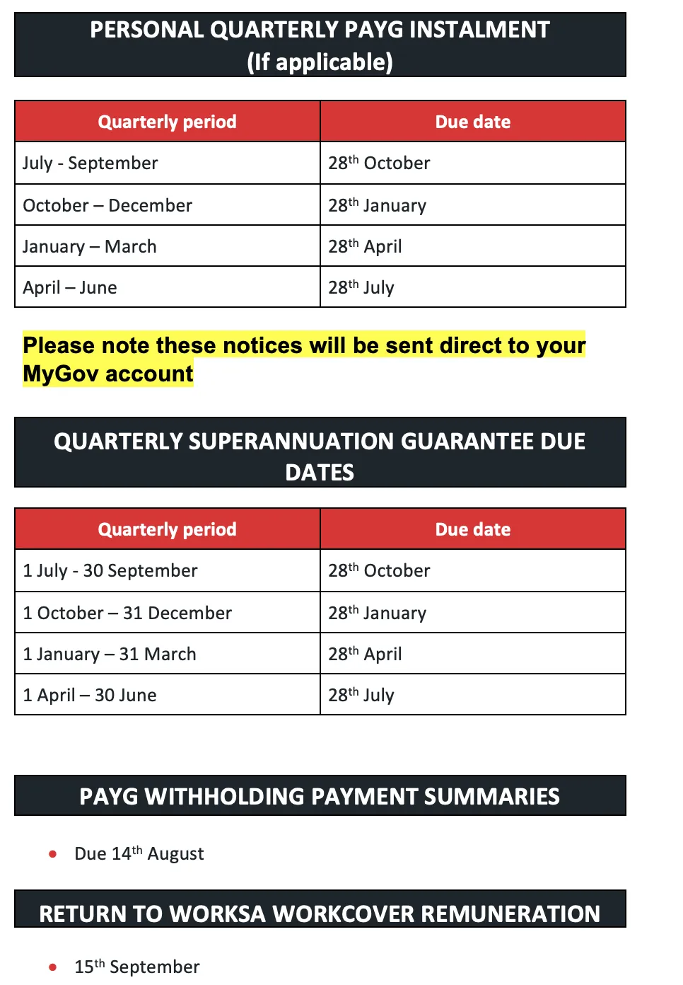 Please note that communication from the ATO will be channeled to you via "Smart Docs" which may include digital links that can only be opened with a code sent to your mobile phone or communication can be accessed by logging into your MyGov account. This method ensures you receive timely and secure access to all necessary information related to your taxation and financial affairs.